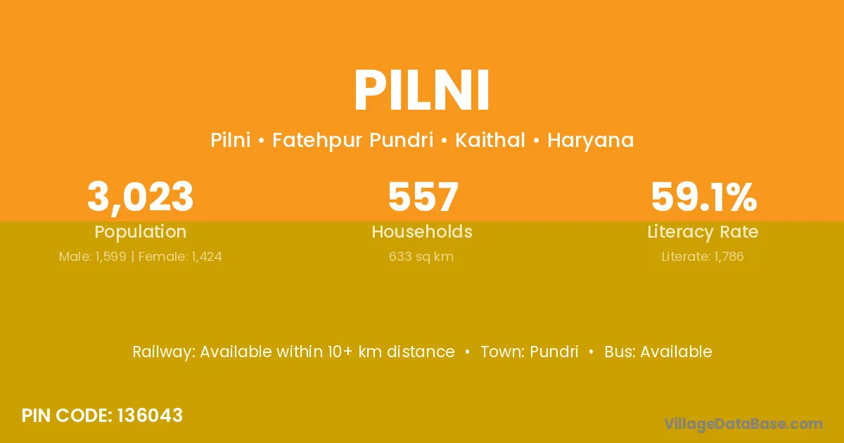 According to Census 2011 information, the village code of Pilni village is 136043.