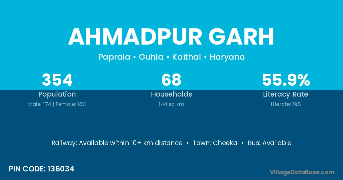 Ahmadpur Garh village has a total population of 354 people, of which 174 are males and 180 are females.
