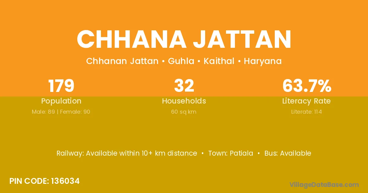 According to Census 2011 information, the village code of Chhana Jattan village is 136034.