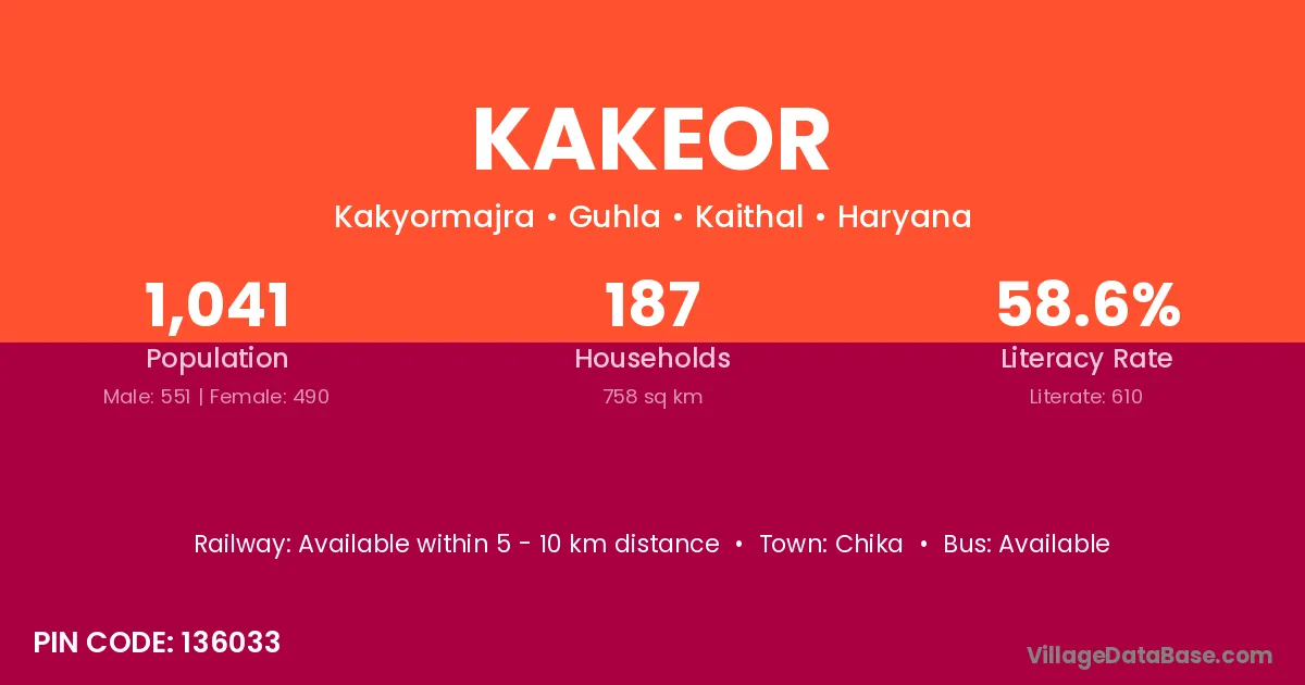 Kakeor village has a total population of 1,041 people, of which 551 are males and 490 are females.