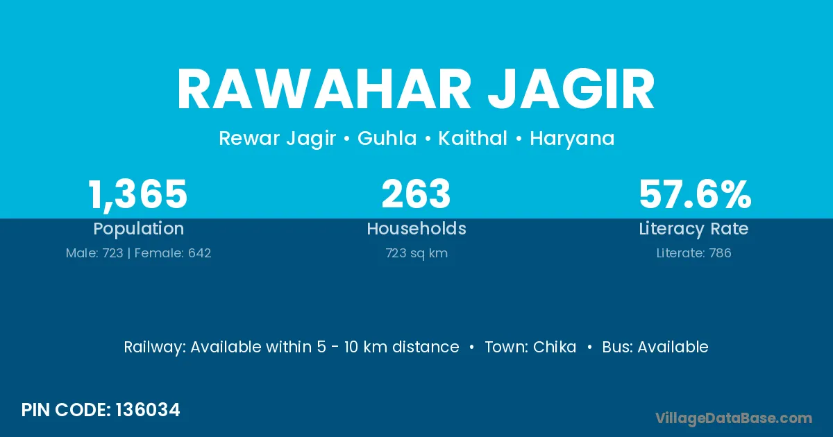 According to Census 2011 information, the village code of Rawahar Jagir village is 136034.