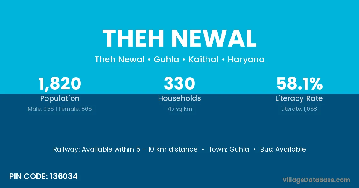 According to Census 2011 information, the village code of Theh Newal village is 136034.