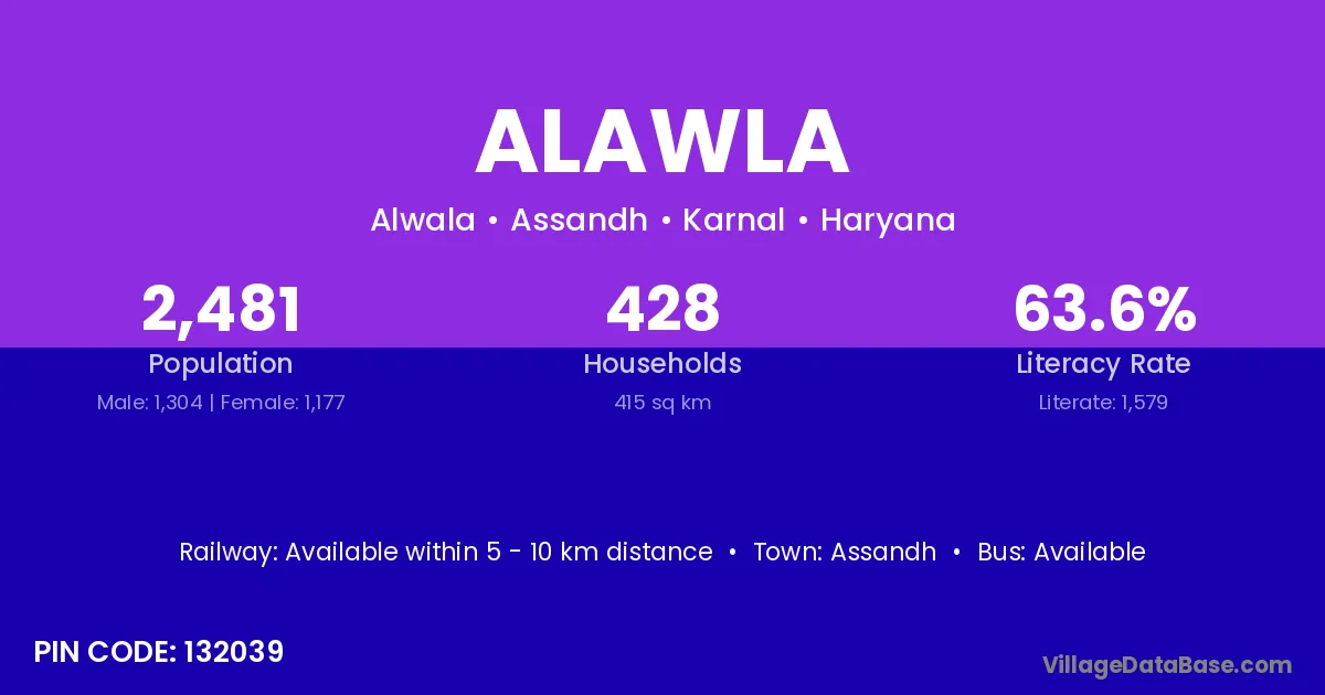 According to Census 2011 information, the village code of Alawla village is 132039.