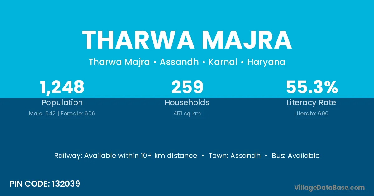 Tharwa Majra village has a total population of 1,248 people, of which 642 are males and 606 are females.