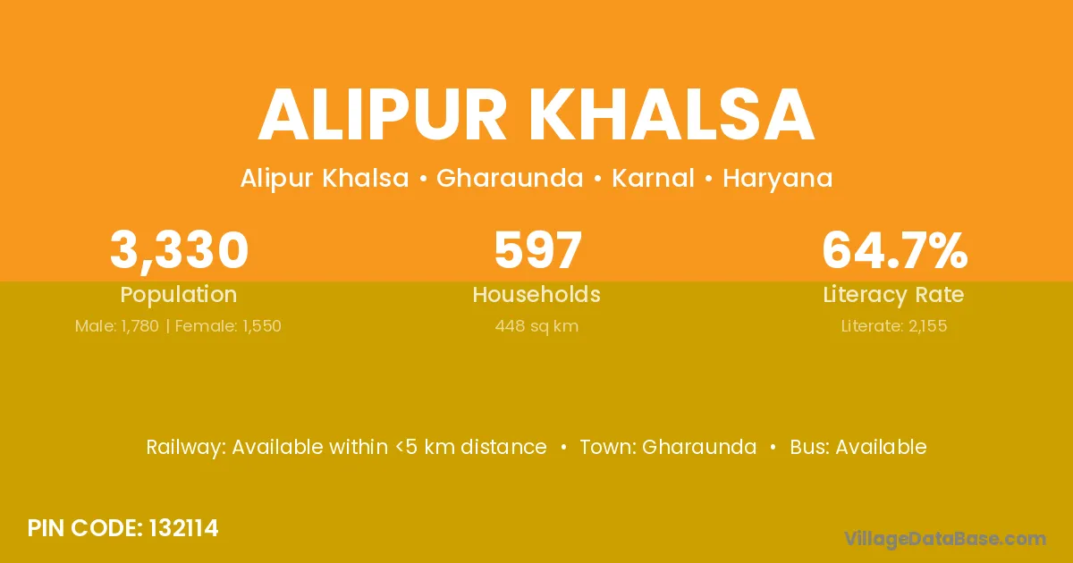 According to Census 2011 information, the village code of Alipur Khalsa village is 132114.