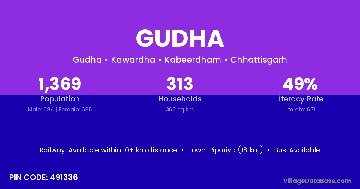 According to Census 2011 information, the village code of Gudha village is 132114.