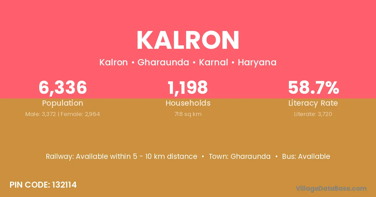 Kalron village has a total population of 6,336 people, of which 3,372 are males and 2,964 are females.