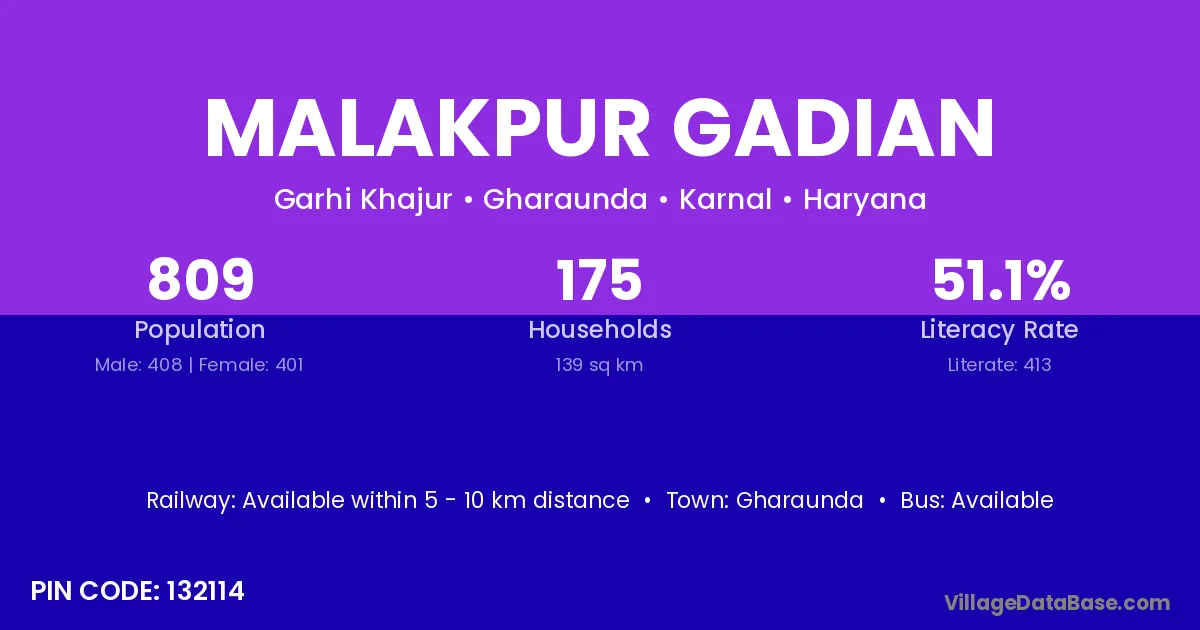 Gharaunda is the nearest town to Malakpur Gadian village for major economic activities