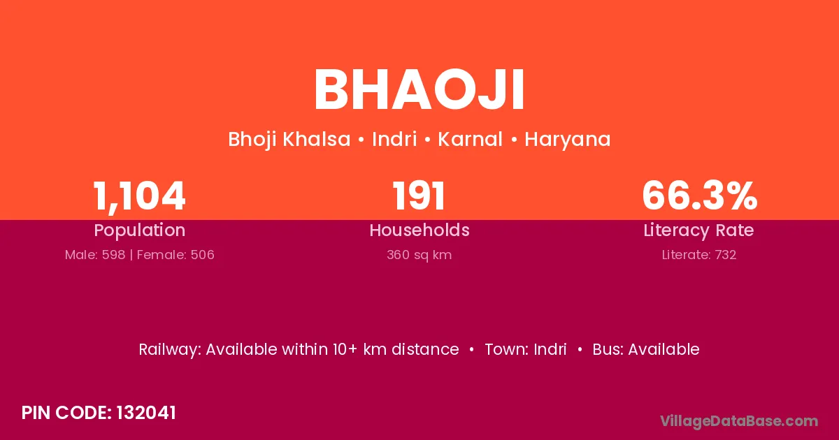 Bhaoji village has a total population of 1,104 people, of which 598 are males and 506 are females.