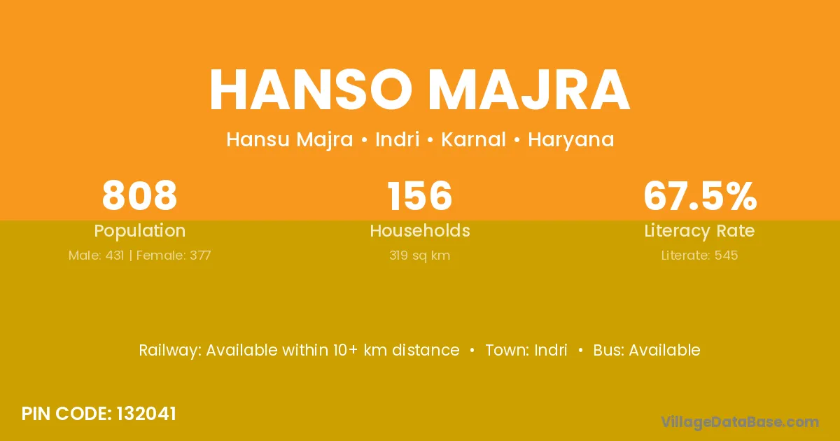 Indri is the nearest town to Hanso Majra village for major economic activities