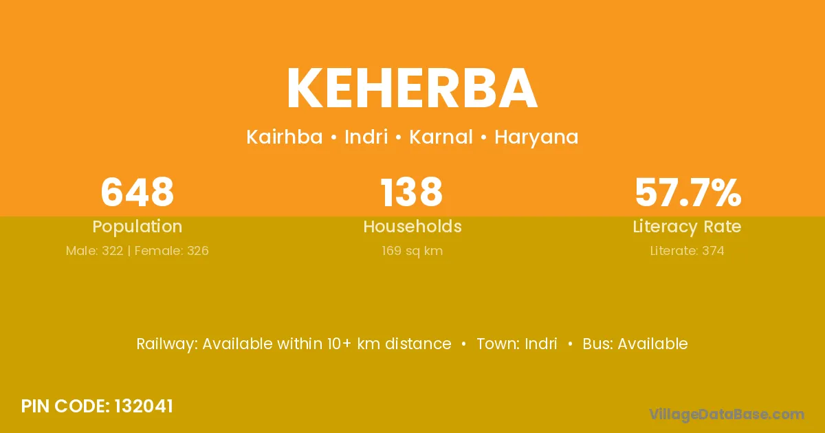 Keherba village has a total population of 648 people, of which 322 are males and 326 are females.