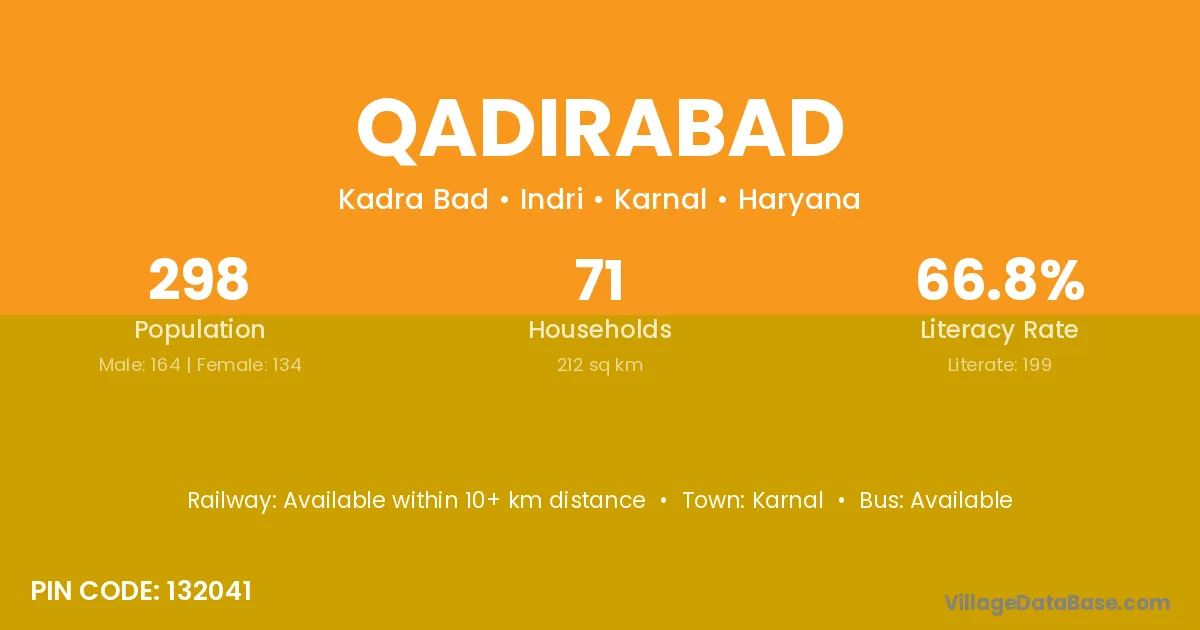 According to Census 2011 information, the village code of Qadirabad village is 132041.