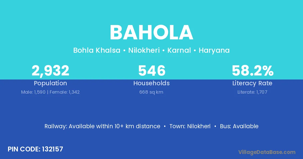 According to Census 2011 information, the village code of Bahola village is 132157.