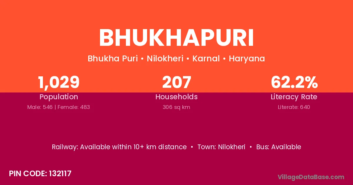 Bhukhapuri village has a total population of 1,029 people, of which 546 are males and 483 are females.