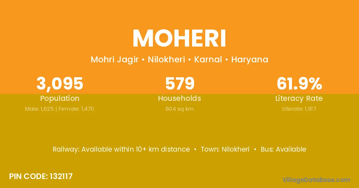 Moheri village has a total population of 3,095 people, of which 1,625 are males and 1,470 are females.