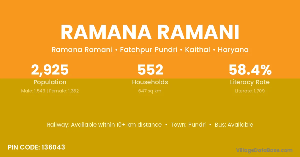 According to Census 2011 information, the village code of Ramana Ramani village is 132116.