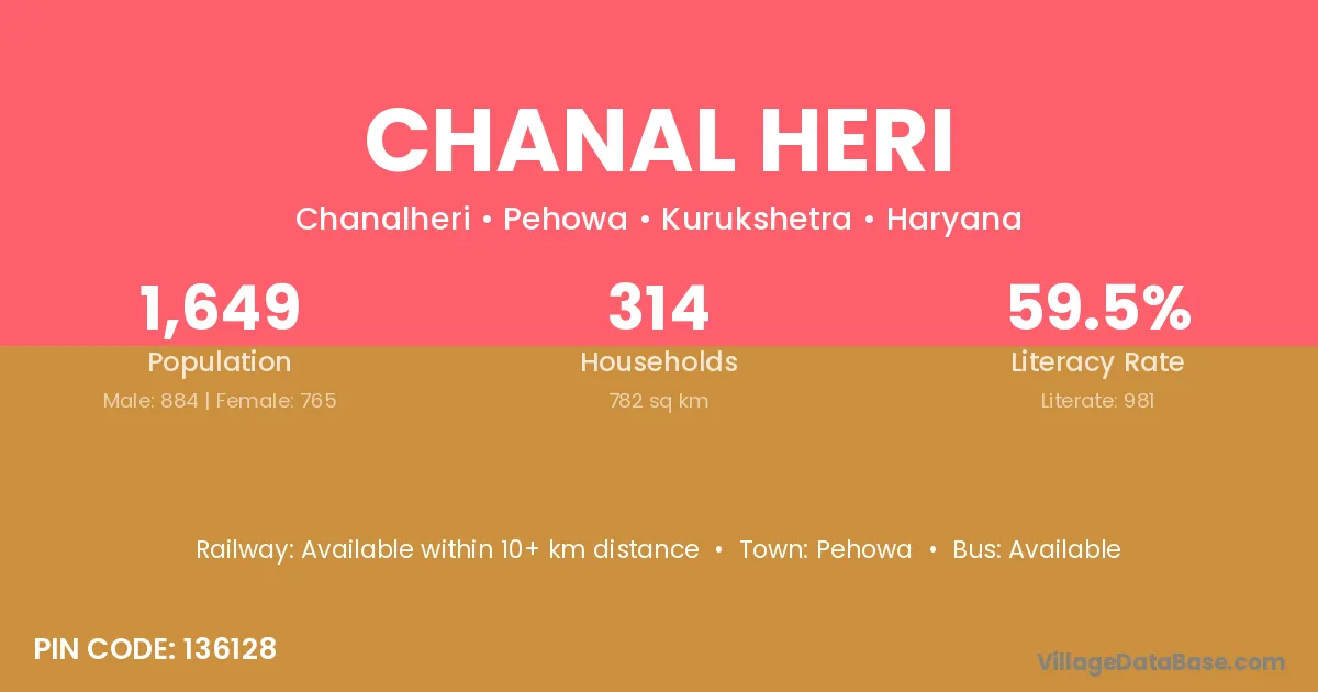 The literacy rate of Chanal Heri village is 59.49%. Male literacy stands at 63.57% and female literacy at 54.77%.