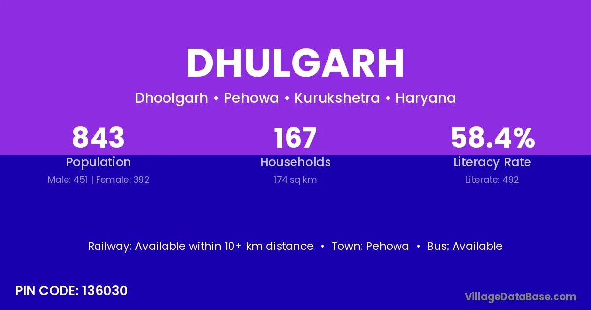 Pehowa is the nearest town to Dhulgarh village for major economic activities