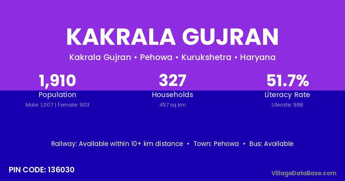 Pehowa is the nearest town to Kakrala Gujran village for major economic activities
