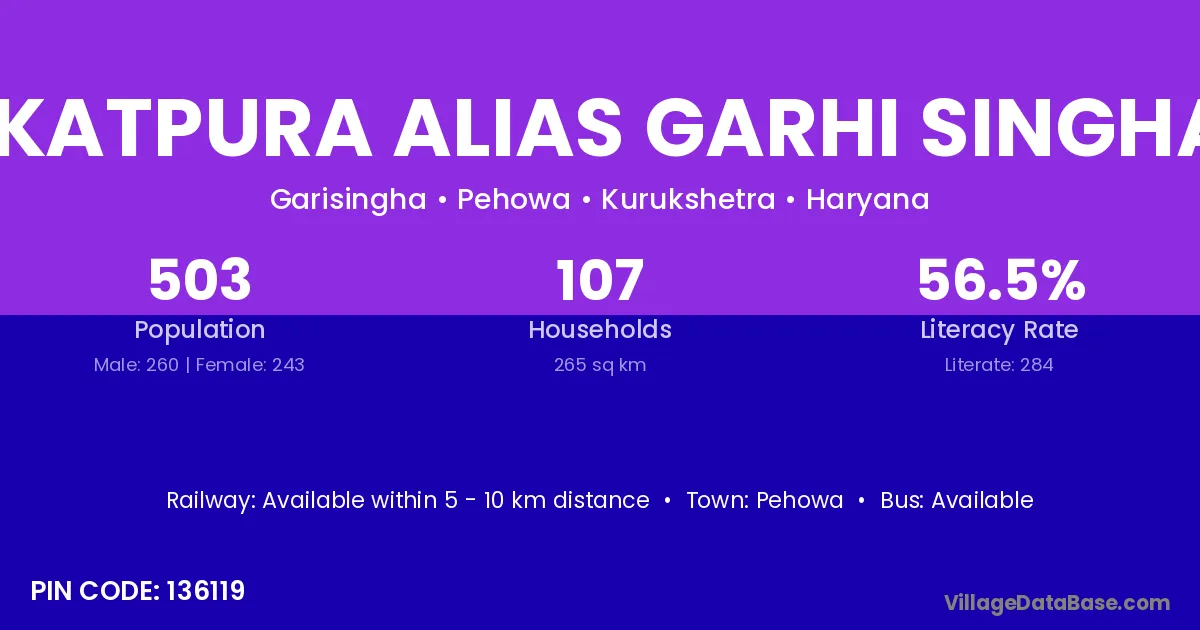 Nikatpura Alias Garhi Singhan village has a total population of 503 people, of which 260 are males and 243 are females.