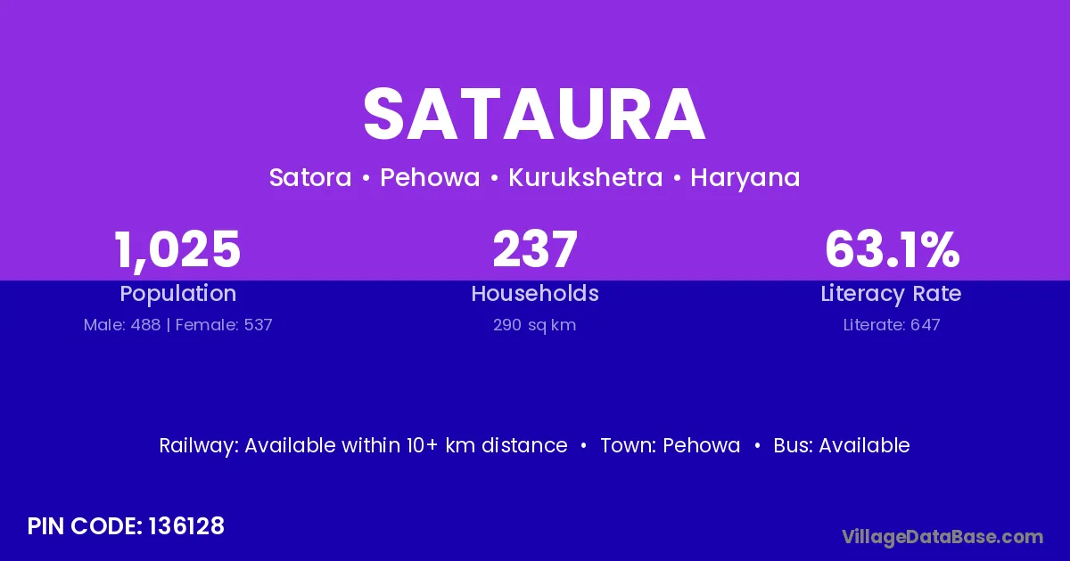 Sataura village has a total population of 1,025 people, of which 488 are males and 537 are females.