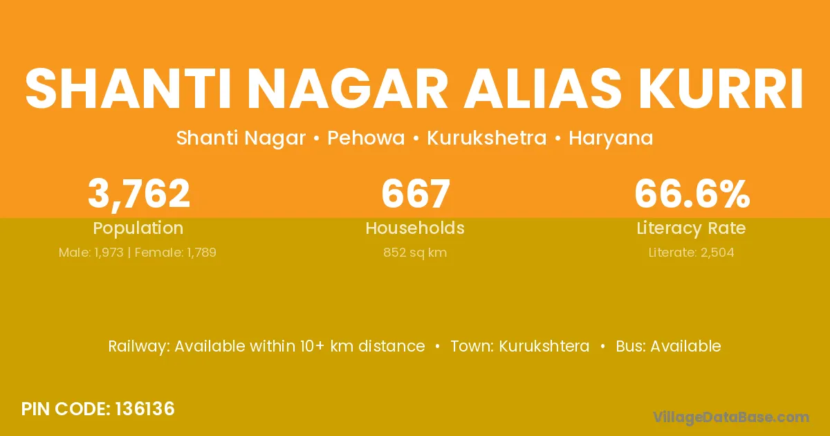 Shanti Nagar Alias Kurri village has a total population of 3,762 people, of which 1,973 are males and 1,789 are females.