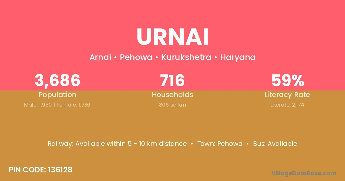 According to Census 2011 information, the village code of Urnai village is 136128.
