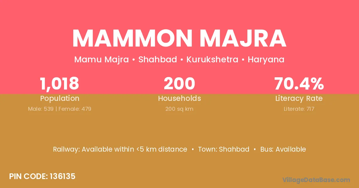 According to Census 2011 information, the village code of Mammon Majra village is 136135.