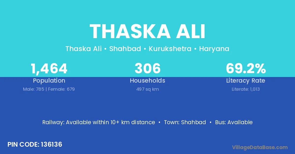 Shahbad is the nearest town to Thaska Ali village for major economic activities