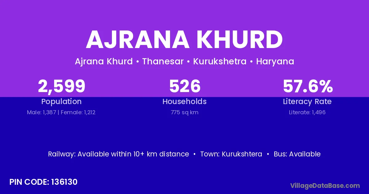 Kurukshtera is the nearest town to Ajrana Khurd village for major economic activities