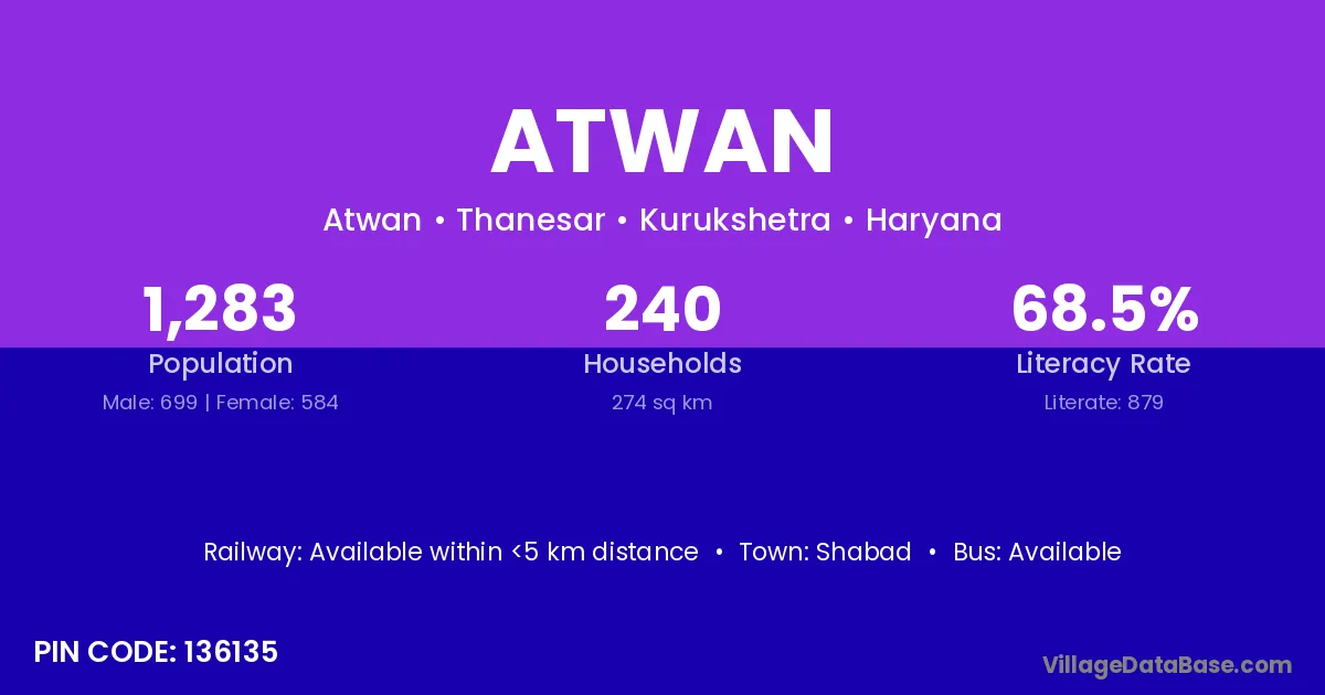 According to Census 2011 information, the village code of Atwan village is 136135.