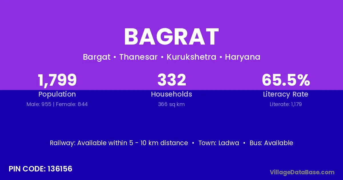 Ladwa is the nearest town to Bagrat village for major economic activities