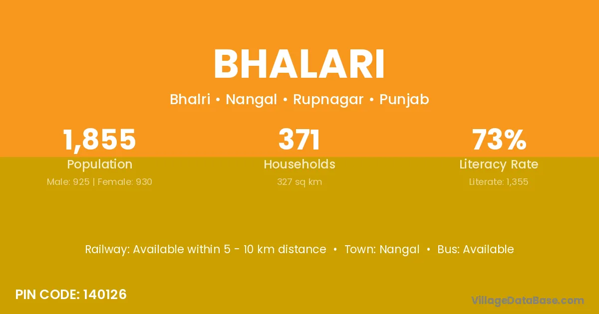 The literacy rate of Bhalari village is 53.23%. Male literacy stands at 63.06% and female literacy at 42.92%.