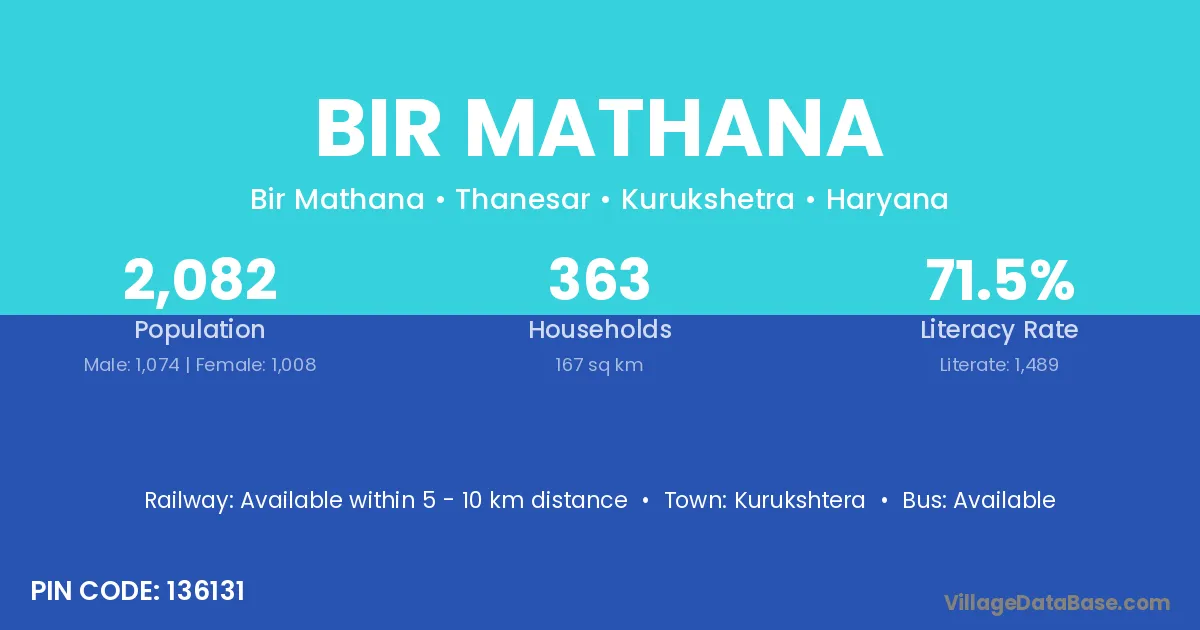 Kurukshtera is the nearest town to Bir Mathana village for major economic activities