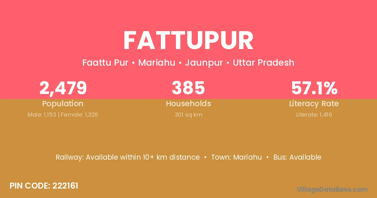 Fattupur village has a total population of 1,696 people, of which 898 are males and 798 are females.