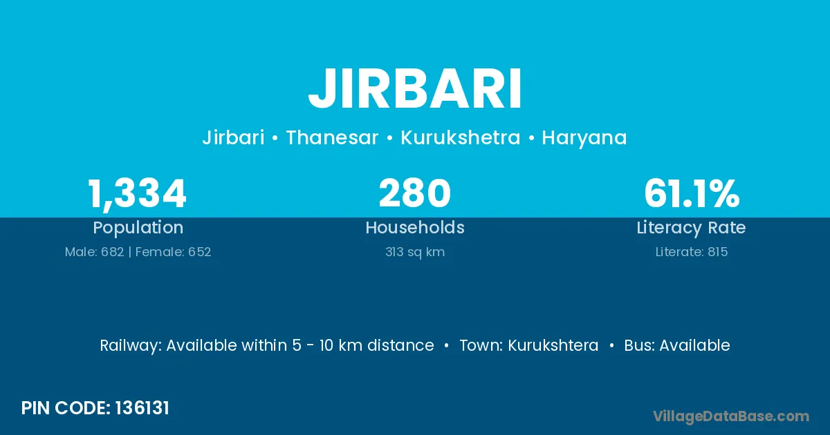 Kurukshtera is the nearest town to Jirbari village for major economic activities