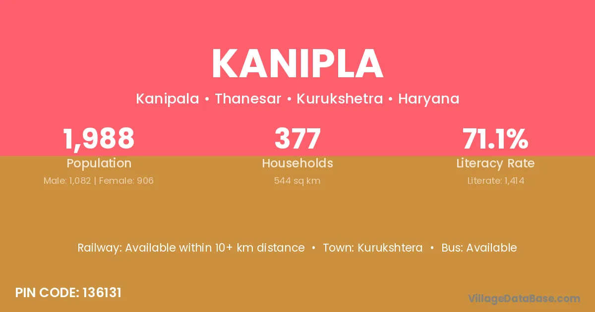 Kurukshtera is the nearest town to Kanipla village for major economic activities
