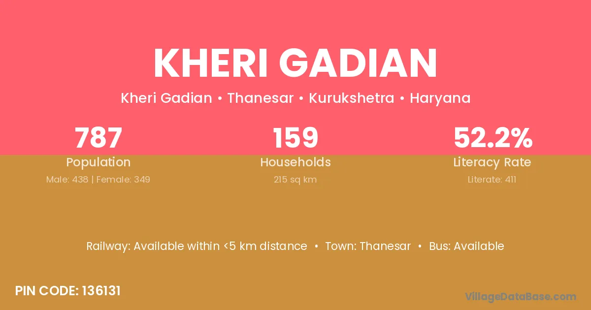According to Census 2011 information, the village code of Kheri Gadian village is 136131.