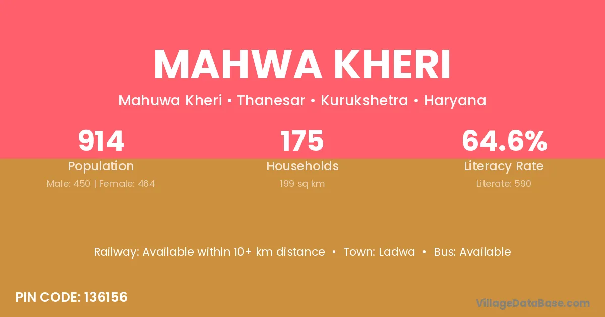 Ladwa is the nearest town to Mahwa Kheri village for major economic activities