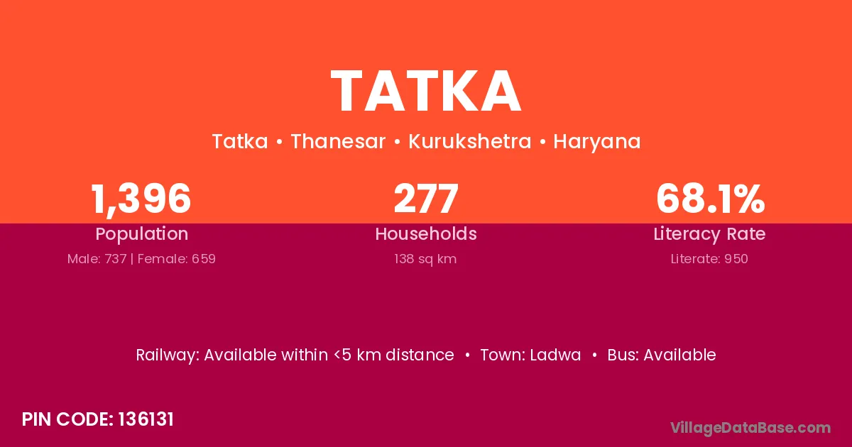 According to Census 2011 information, the village code of Tatka village is 136131.