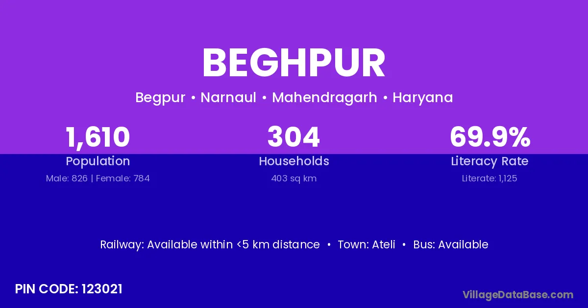 Ateli is the nearest town to Beghpur village for major economic activities
