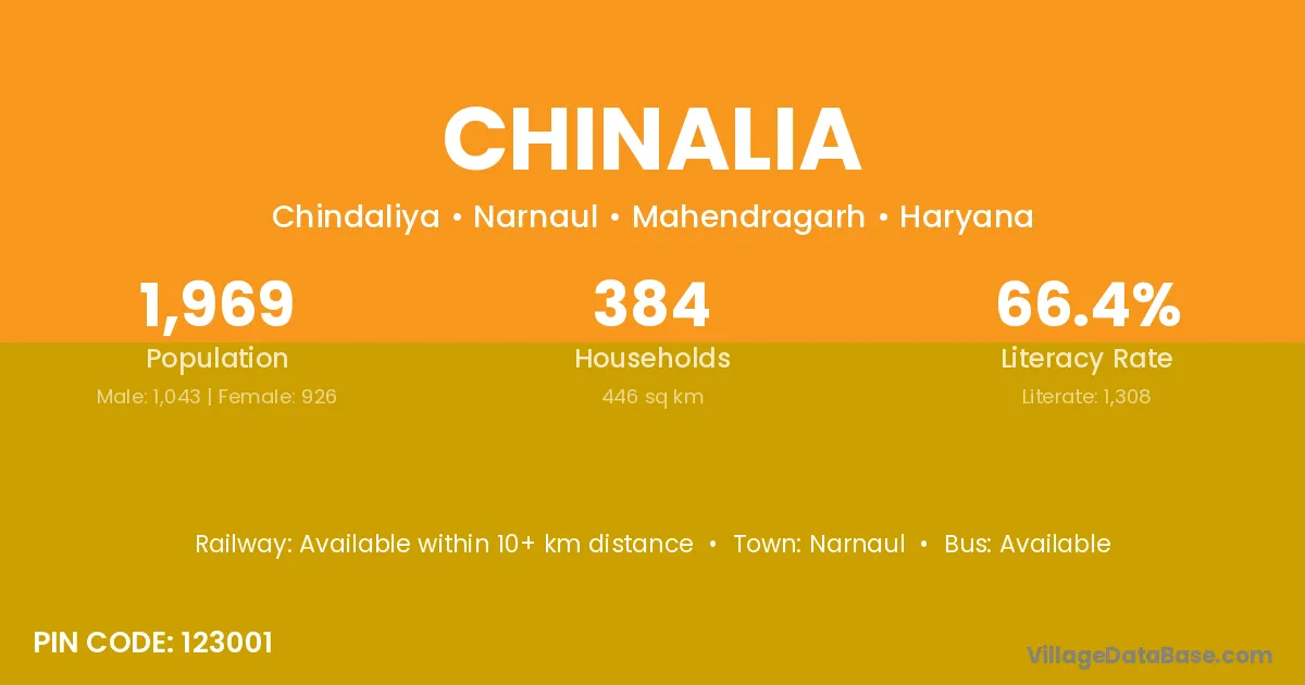 Narnaul is the nearest town to Chinalia village for major economic activities