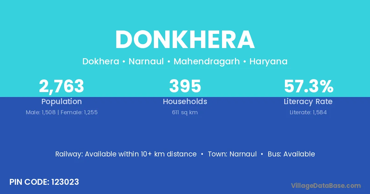 According to Census 2011 information, the village code of Donkhera village is 123023.