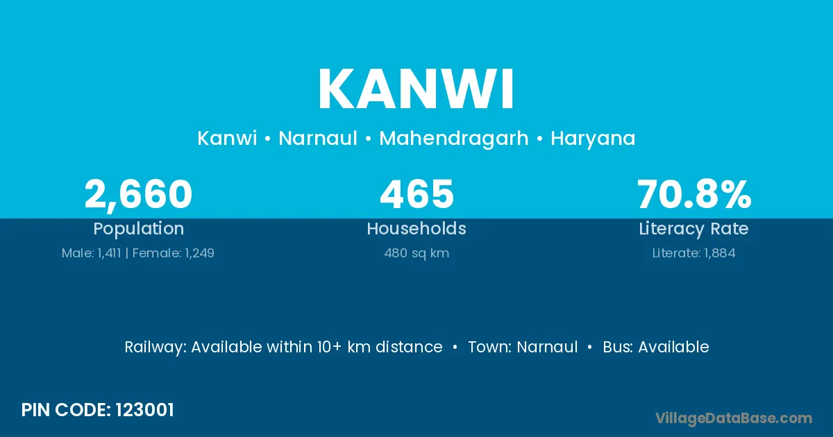 Narnaul is the nearest town to Kanwi village for major economic activities