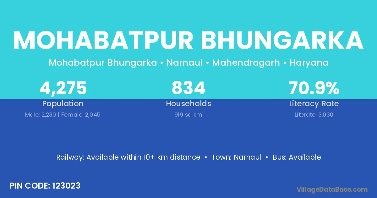 According to Census 2011 information, the village code of Mohabatpur Bhungarka village is 123023.
