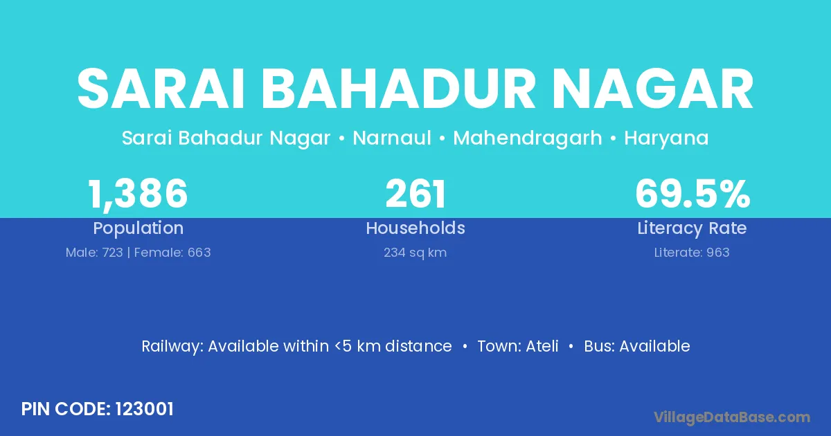 Ateli is the nearest town to Sarai Bahadur Nagar village for major economic activities