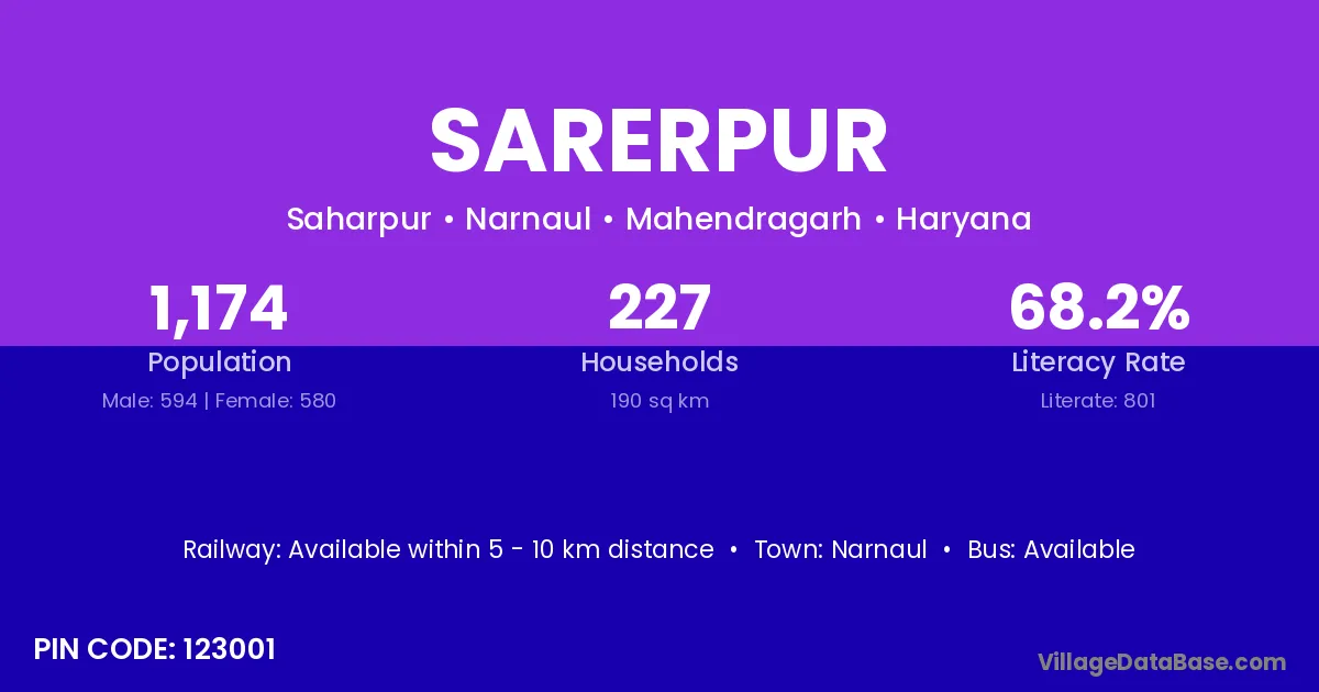 Narnaul is the nearest town to Sarerpur village for major economic activities