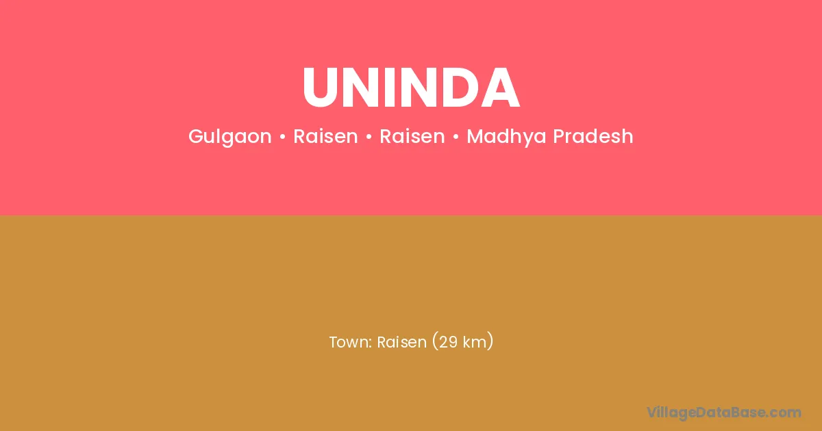According to Census 2011 information, the village code of Uninda village is 123021.