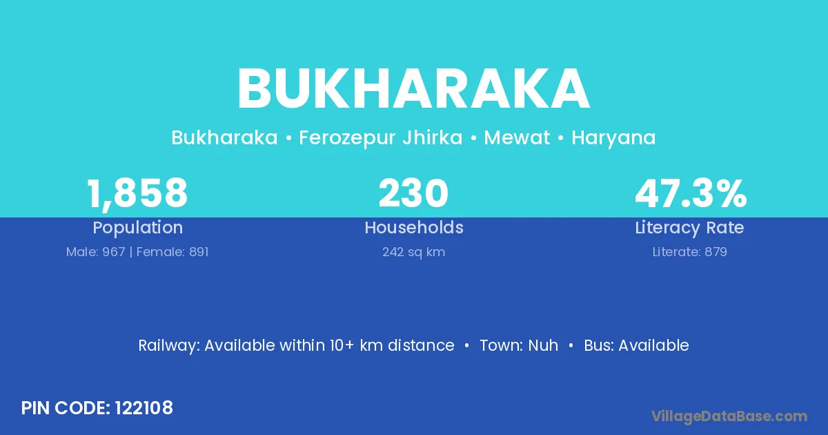 Nuh is the nearest town to Bukharaka village for major economic activities