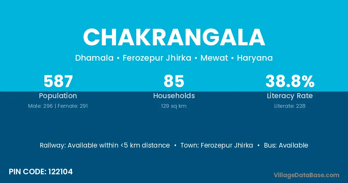 Ferozepur Jhirka is the nearest town to Chakrangala village for major economic activities